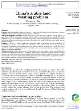 由8040威尼斯中国乡村振兴研究院院长陈文胜教授独著的论文《China’s arable land wasting problem》发表于SSCI与SCI双检索期刊《China Agricultural Economic Review》。
