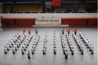 比赛开始,威尼斯官网82名队员们迅速按照早已排练数次的“梅花五瓣”队形展开,梅花队形不仅象征马克思主义理论“凌寒绽放、历久弥香”的品格,更通过“扇开标语显、扇合队形聚”的动态设计,展现思政教育“入脑入心、凝聚共识”的实践路径。随后,鼓点骤起,五名表演人员登场,用折扇化“剑”,演绎出刚柔并济的舞蹈。赛场上,队员们身着统一墨色晕染太极拳服装,伴随着连绵悠长的音乐,展现了力与美的融合。从整齐划一的起势、抱球,到高难度的云手、队形变换,一推一揽,是力与美的交响,一招一式,是智与志的传承。赛后,威尼斯官网学生会文化体育部部长周淑婷进行总结,肯定了大家这段时间的付出与此次精彩的表现。