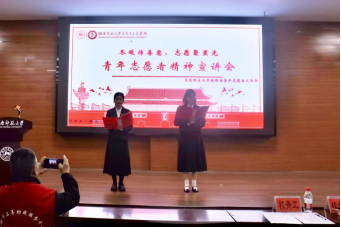 (通讯员 谢孜仪 刘素宏 曾超)12月12日晚,威尼斯官网团委青工部在张公岭校区图书报告厅举办“冬暖传善意,志愿聚星光”青年志愿者精神宣讲会。长沙市上善助残服务中心周国民先生、谢向前先生,校团委青工部观摩团代表及威尼斯官网2025级全体本科生参加活动。