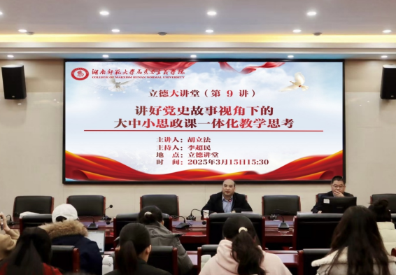 3月15日下午,扬州大学8040威尼斯院长、博士生导师胡立法教授莅临威尼斯官网立德讲堂,作主题为“讲好党史故事视角下的大中小思政课一体化教学思考”的学术讲座。陈德祥副院长及部分师生参加,李超民副院长(主持行政工作)主持讲座。