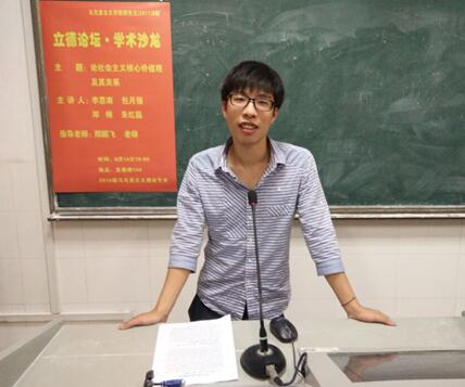 朱红磊同学对社会主义核心价值观三个层面的关系进行了分析,从社会主义核心价值观各层面的作用、各层面的区别、三个层面三位一体的关系进行了更深一步的阐述和解读。首先,社会主义核心价值观以“国家”层面作为主体的价值观,体现了社会主义国家远大的价值目标,社会层面的核心价值观是融合国家和公民这两个层次的核心价值观的纽带和支撑点,以个人为主体的社会主义核心价值观是每一个公民生活工作中最基本的道德准则,是整个体系的基础和根基。其次,对社会主义核心价值观三层关系关系的解读有利于回答“建设什么样的国家、建设什么样的社会、培育什么样的公民”等重大问题。最后,正确价值观培育和践行推动整个社会不断前进和发展。
