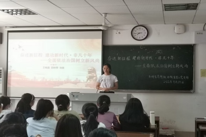 (通讯员 刘倩 田林萃 袁芳)9月14日,学院本科生第二党支部开展以“奋进新征程建功新时代·非凡十年---全面依法治国树立新风尚”为主题的理论学习。2020级、2021级本科生党员参加学习,王铭晨同志作主题发言。